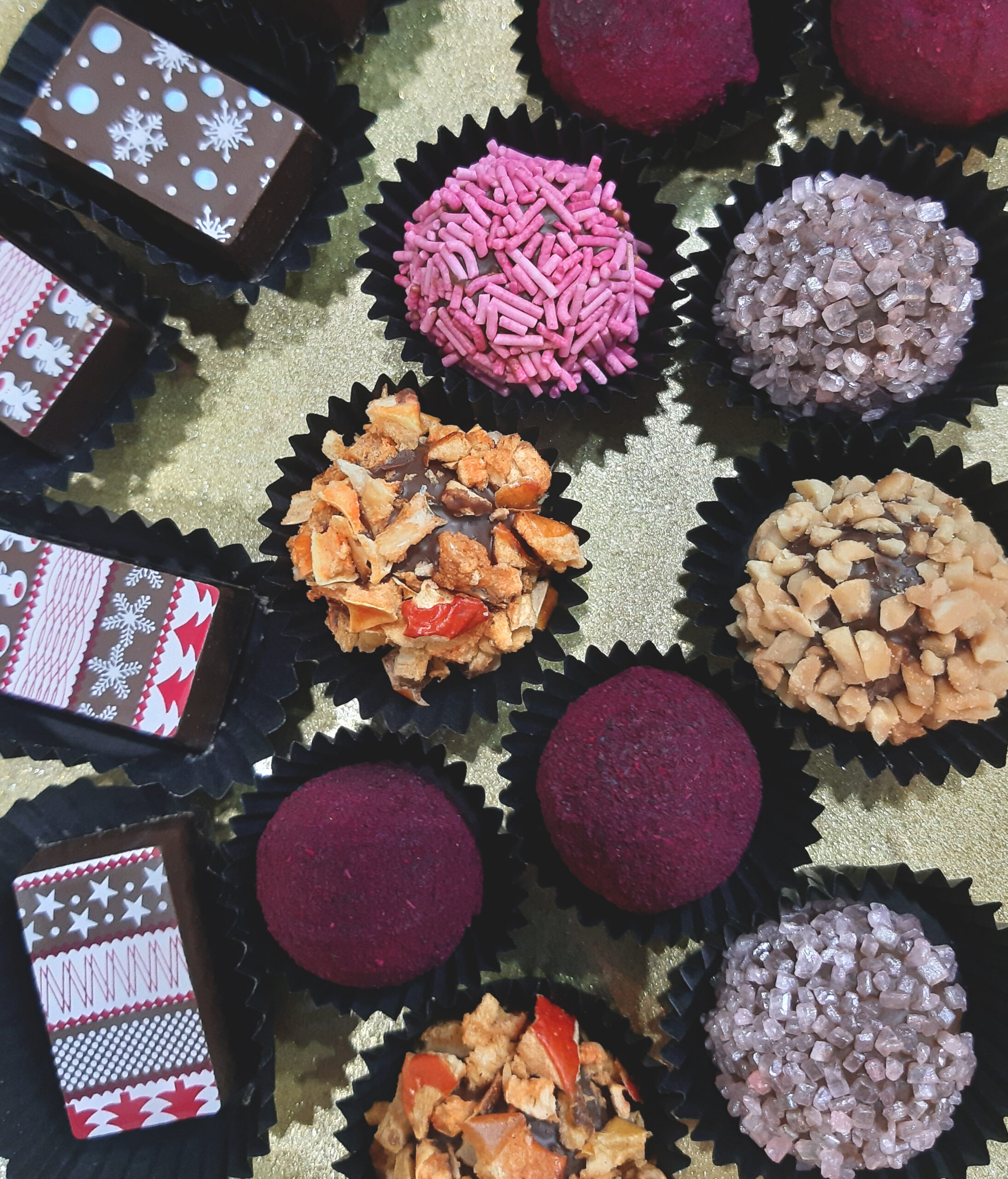 Dodatkową dawką szczęścia były praliny o mocno zaskakujących smakach! Połączenie żurawiny z jamaica rum, czekoladowa z posypką z buraka, porzeczka i wiele innych…